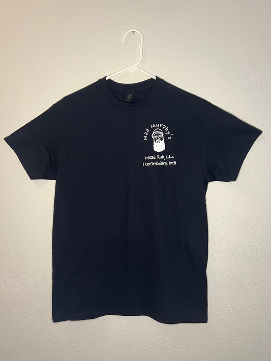 Black shirt white slogan