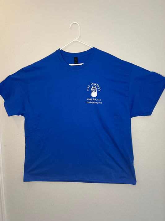 Sold outBlue Shirt Silver Slogan