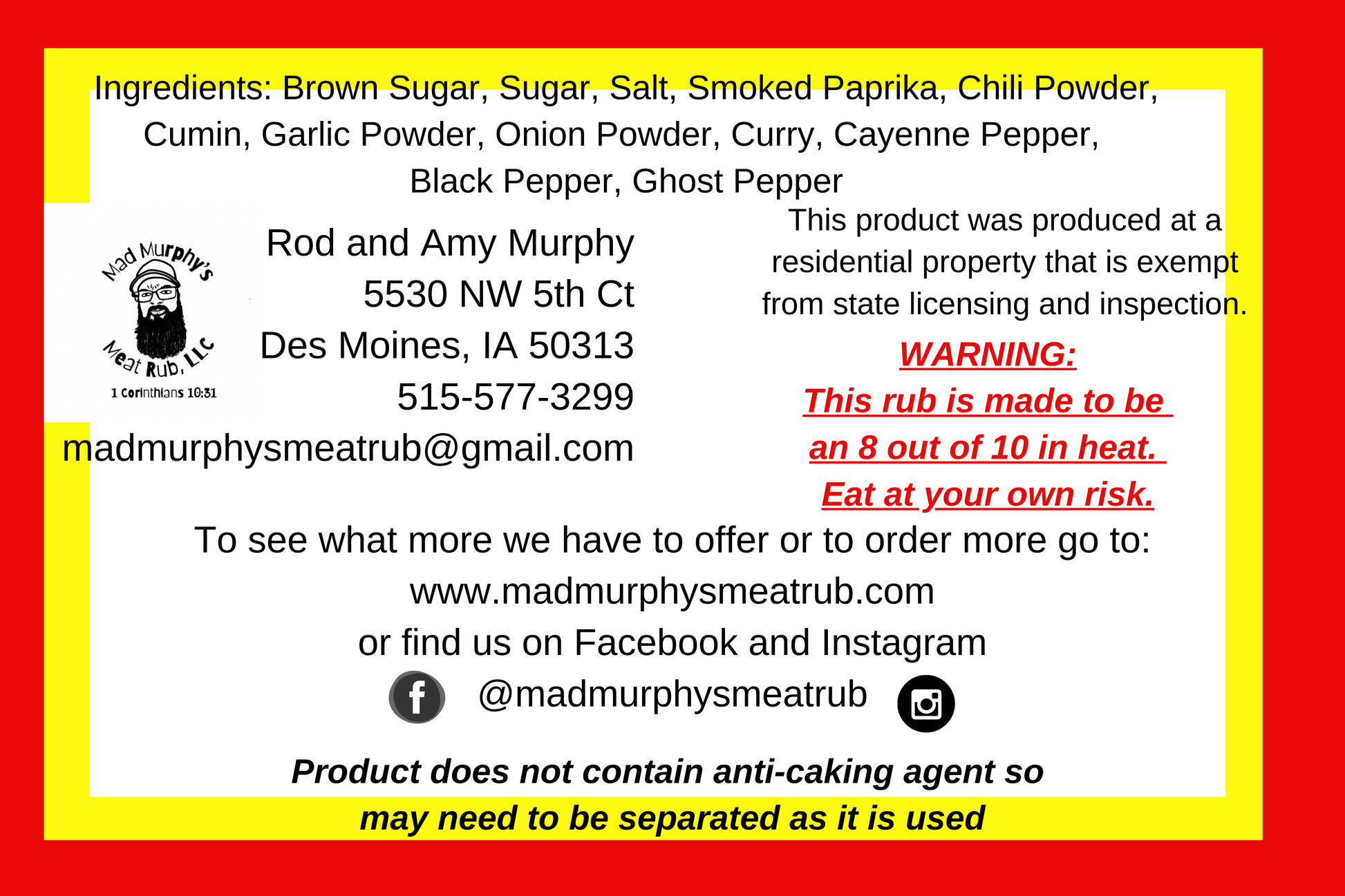 ** 🔥Warning 🔥This rub is made to be a 8 out of 10 on heat level. Eat at your own risk.