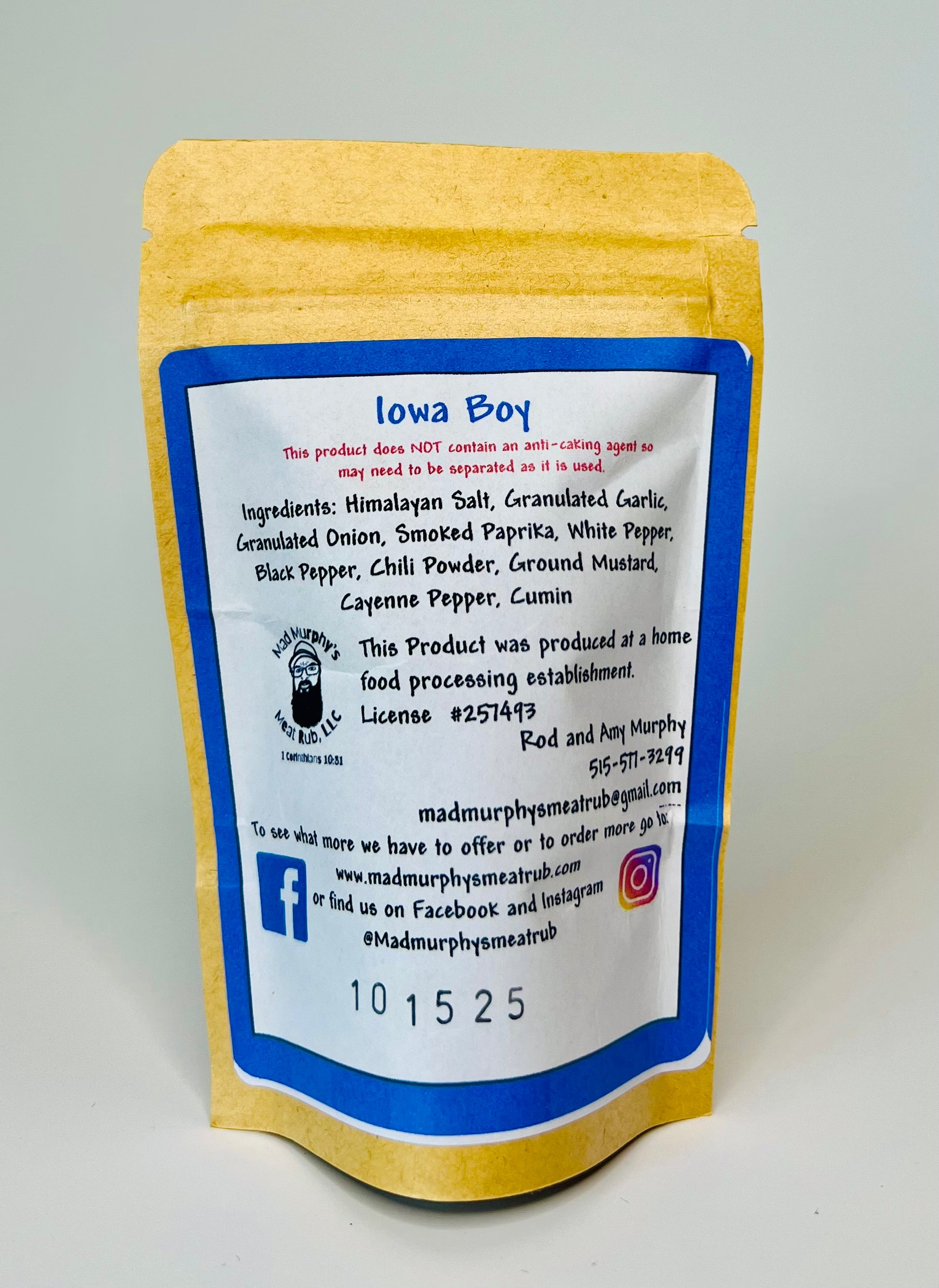 The Iowa Boy Brisket Rub has no sugars or sugar substitutes. It is primarily for beef and is an Iowa twist rub with a kick.